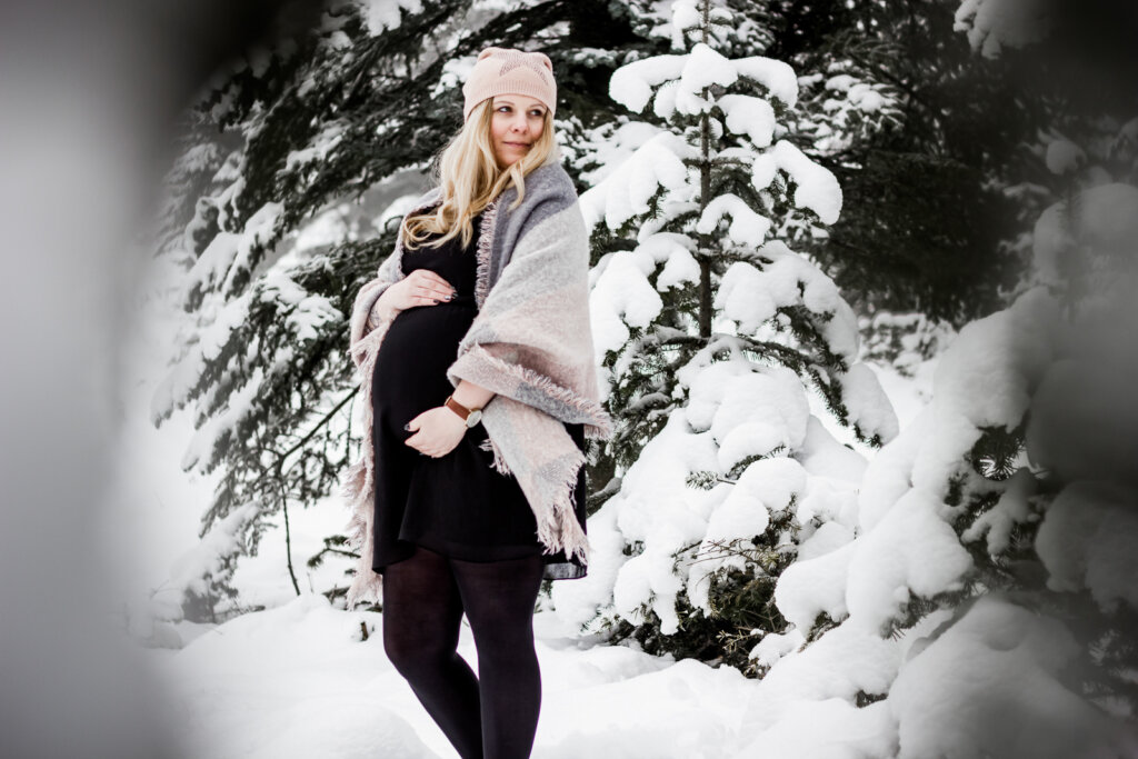 In dieser traumhaften Kulisse, unter verschneiten Tannen, durften wir in einem Portraitshooting die besondere Zeit von Maxis Schwangerschaft festhalten. Durch die Verwendung verschiedener Accessoires konnten wir unterschiedliche Bildstimmungen erzeugen, die die einzigartige Atmosphäre dieses magischen Moments einfingen. Die Vielfalt der Bilder spiegelt die Vorfreude und die Emotionen von Maxi während dieser aufregenden Zeit wider.
